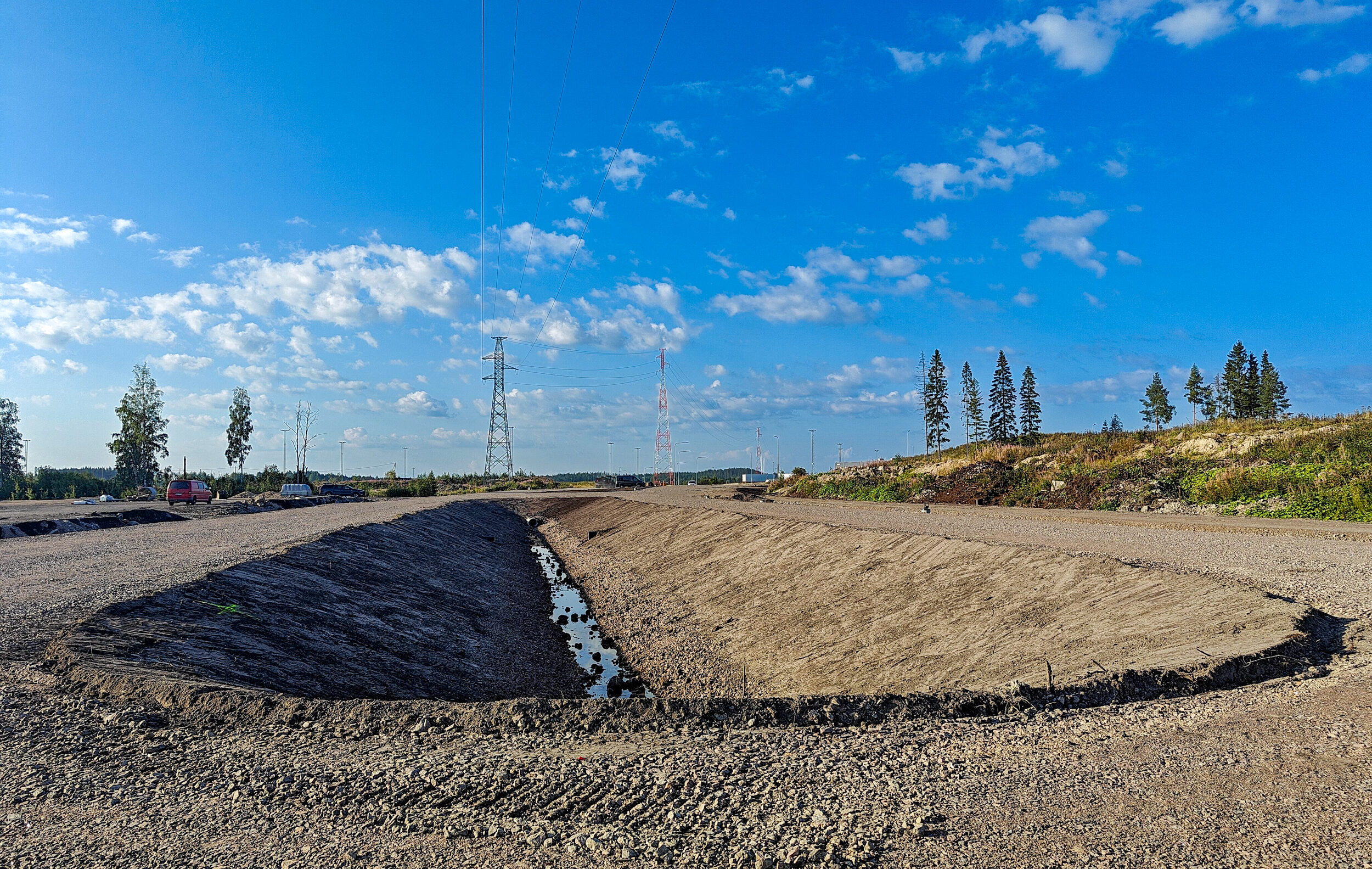 Kultasuontien urakassa rakensimme laskuojaa, hulevesirumpuja, huoltotietä ja rakensimme alueelle pumppaamon. Pumppaamo rakennettiin paalutetulle alueelle ja kaivanto rakennettiin pumppaamotuentaelementeillä.